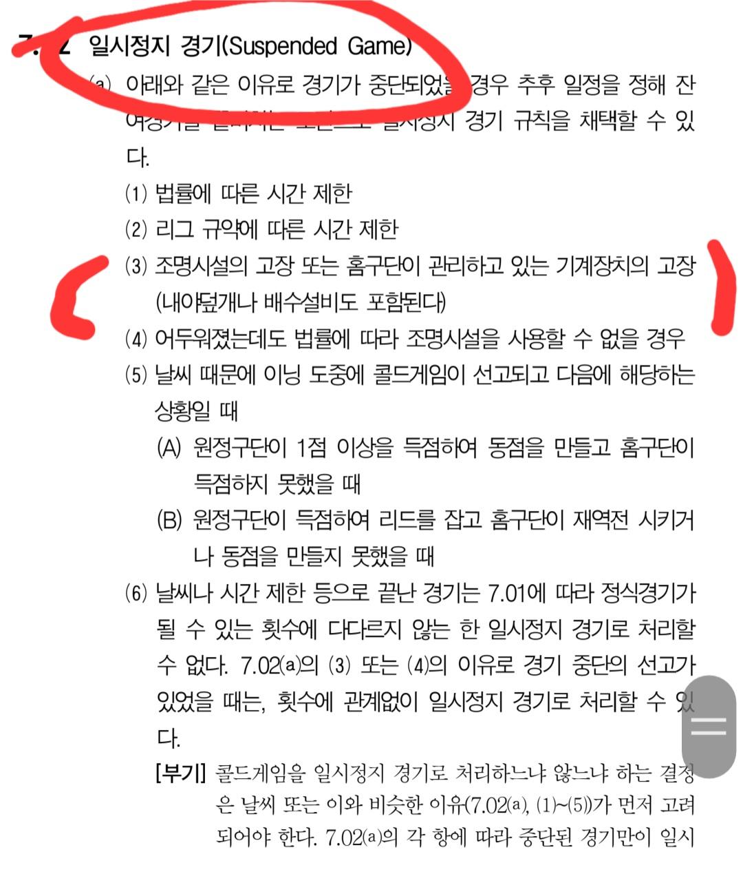 그래서 경기를 지연시키다가 해결이안되면 취소하고 다음에 더블헤더를하던가해서 마무리를 짓습니다.