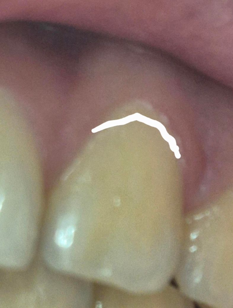 다른 잇몸보다 이빨이 보이는 정도가 좀 더 패인느낌... 그리고 그 경계가 좀 아픕니다.