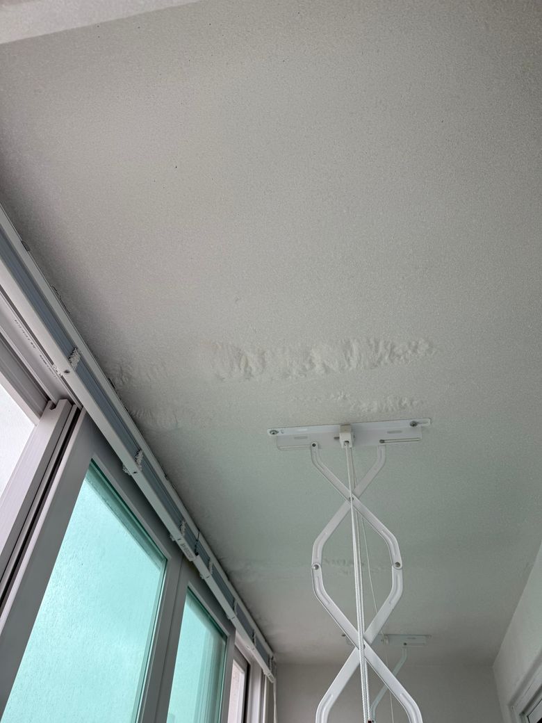 처음 집을 볼때 베란다 천장에서 페인트가 일어난 부분이 있어서 매도인에게 물어봤는데 누수는 아니고,