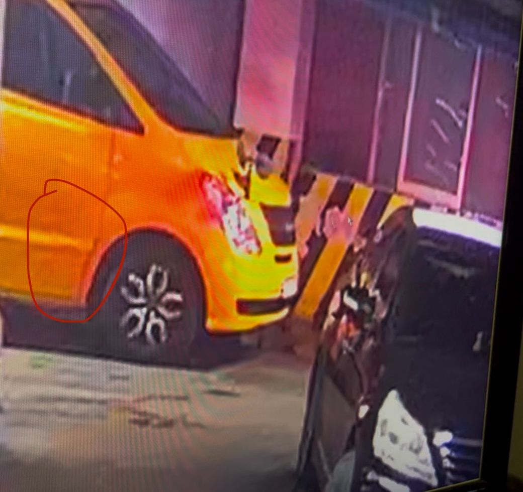사고전 해당부위를 확대해본 결과 차량손상이 확인이 되지 않았으나, 그 차량이 저희차량 옆에서 꺽어 나온 후 장면부터는 사고부위로 추정되는 부위에 상처가 발생되어있습니다