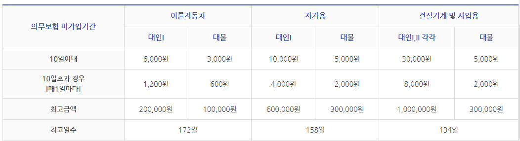 자동차 보험을 늦게 갱신할수록 과태료는 무한으로 올라가나요?