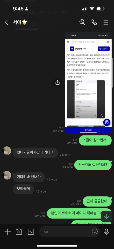 안녕하세요. 고등학생이지만 호기심에 제가 트위터를 들어가 어느 분의 아이디가 보여 그 아이디로 추가를 했습니다. 그분께 인사정도 맞는지 확인 차 답장을 했는데 그분이 차단하시겠다 하시고 , 갑자기 시간이 지나 7시쯤 저를 민원에 신고하였습니다. 제가 이 분에게 여쭈어본거나 물어본건 ㅇㅇ님 맞으신가요? 라고 답장을 했고 그분은 이렇게 글을 올려주셨습니다. 합의금으로 200을 달라 하시더라고요. 이거 사기인가요..?