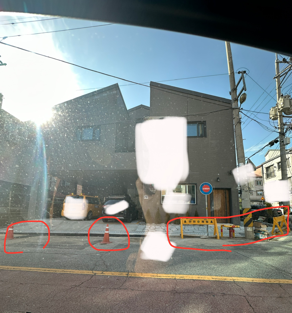 사유지라면 문제되지 않겠으나, 사유지 이외의 부분을 점유하고 있는 것이라면 불법점유가 문제되므로 관할 구청에 신고하여 단속을 요청하시면 되겠습니다. 단속결과에 따라서는 과태료 부과등도 예상됩니다.