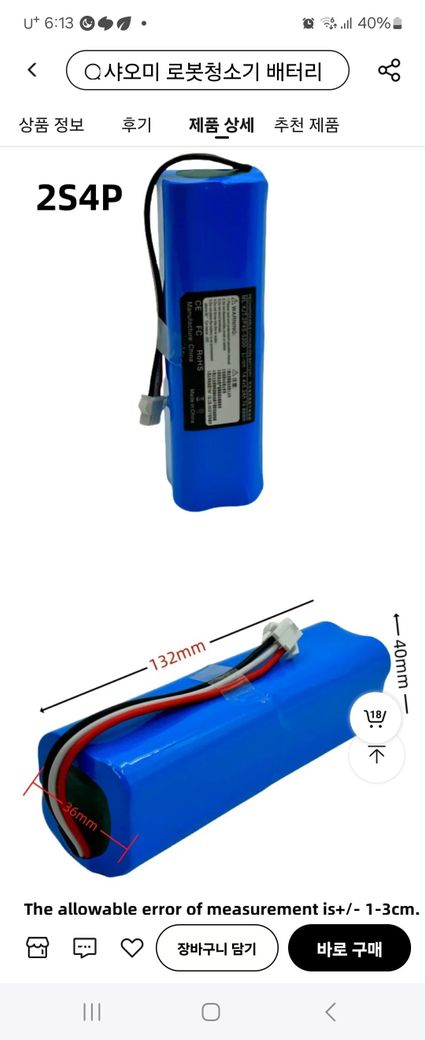 1번 로봇 청소기 배터리분해유 보니 4s2p배터리가 들어있어서 구매할려고보니 사진 보시고 답변좀 부탁드려요