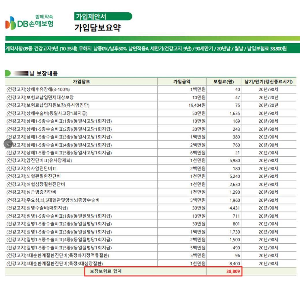 금액 대비 적절하게 짜여진 보험으로 보입니다. 다만 현재 가지고 있는 보험의 상세한 약관을 확인 해