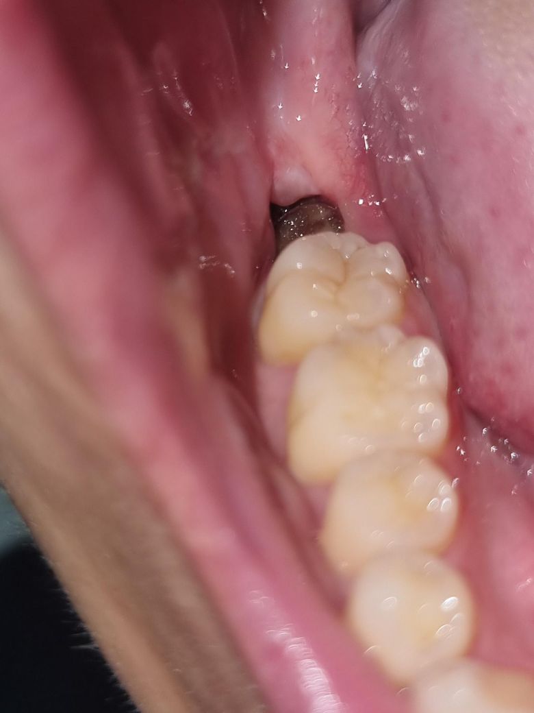 그런데 찌꺼기를 빼고 나고 찍은 사진인데 사랑니 자리가 갈색인게 찌꺼기가 아직 남은건지 아니면 색깔이 원래 저런건지 왜 갈색인지 모르겠네요