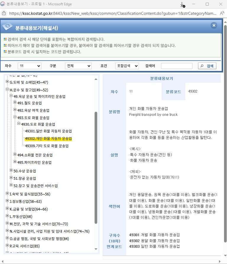 업종코드 602310 개인 화물자동차 운송업으로 물류산업에 포함되는 것 같긴 한데