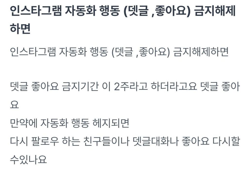 인스타그램 자동화 행동 계정정지 당하면 해지는 가능하나요 인스타그램 에서