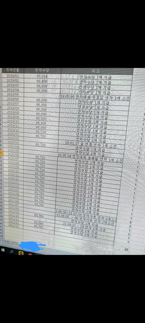 21년 12월 연차까지는 지급을받았고 22년 연차를