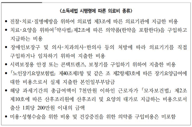 이 때, 가입자가 부담하는 요양비를 "소득세법 시행령 제118조의5제1항 및 제2항"에 따른 의료비로 규정하고 있는 바 이 점 참고하시기 바랍니다.