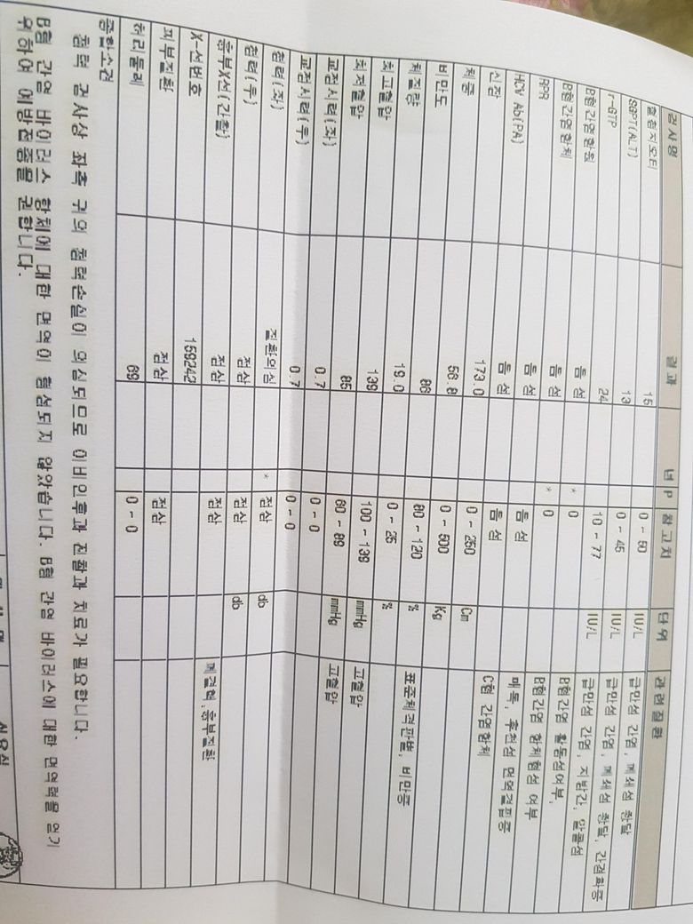 B형간염 항체가 없는 것 외에 특별히 이상소견이 있다 판단되지는 않습니다.