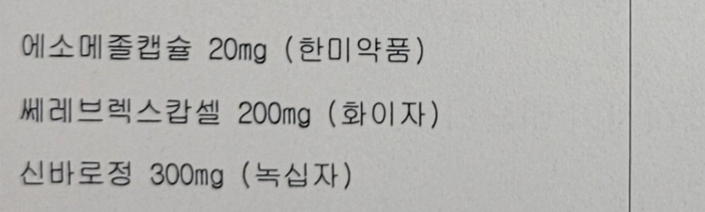 에스메졸, 쎄레브렉스, 신바로는 식후에 드시구요.