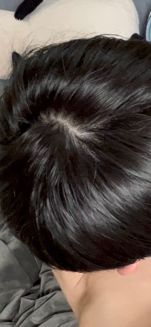 제시해주신 사진상으로 모발이 여러 방향으로 뻗어나가는 가마 중심부에서 두피가 노출되는 정상적인 범주로 보입니다. 그러나 질문자님이 느끼시기에 최근 탈모량이 빠르게 늘었거나(100가닥 이상), 정수리 부위의 볼륨감이 예전만 못하시면, 모발이 가늘어지고 있는지 확인해주시는 것이 필요하겠습니다.