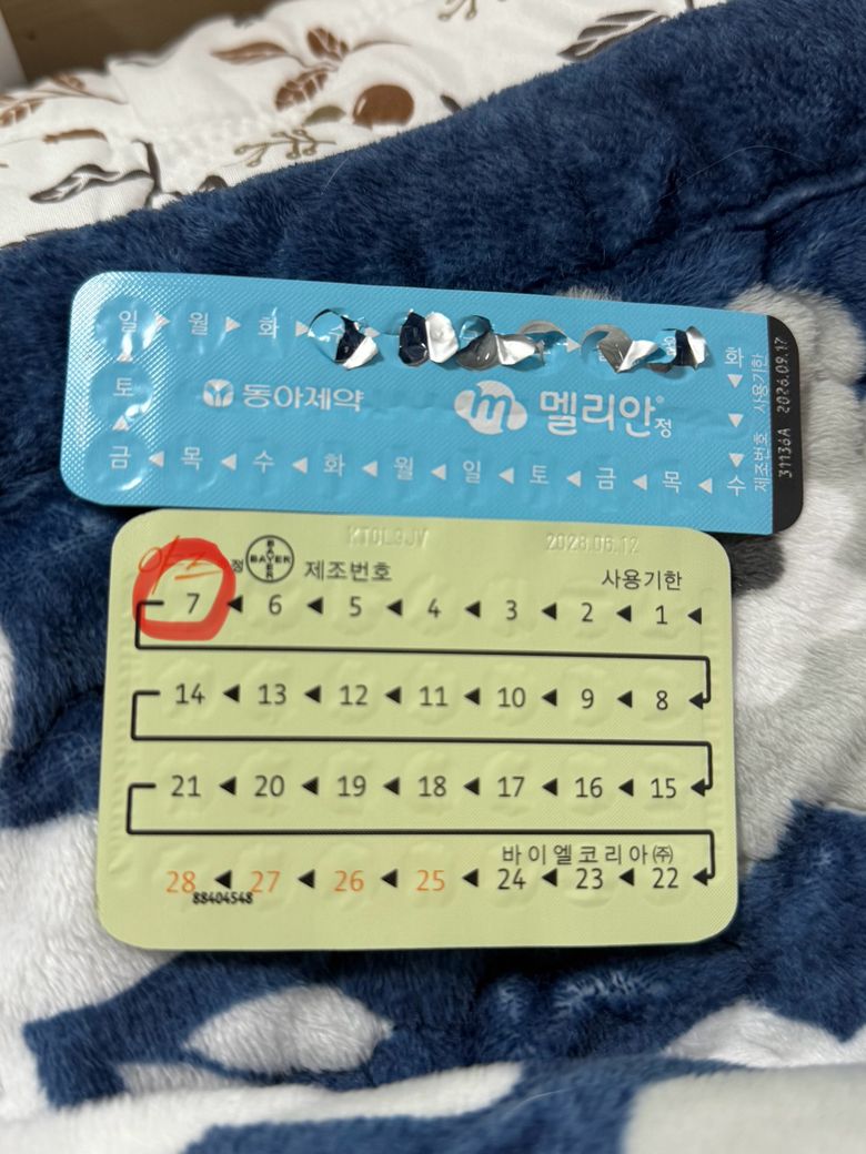 사진처럼 7번째 약부터 쭉 복용하면 되는건가요?