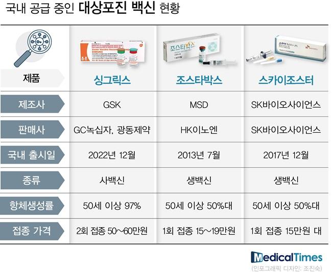 최근에 나온 싱그릭스 주사가 두번 맞아야하고 비싸지만 항체 생성률이 훨씬 높기 때문에 지금은 대부분 싱그릭스를 사용하고 있는 상태입니다.