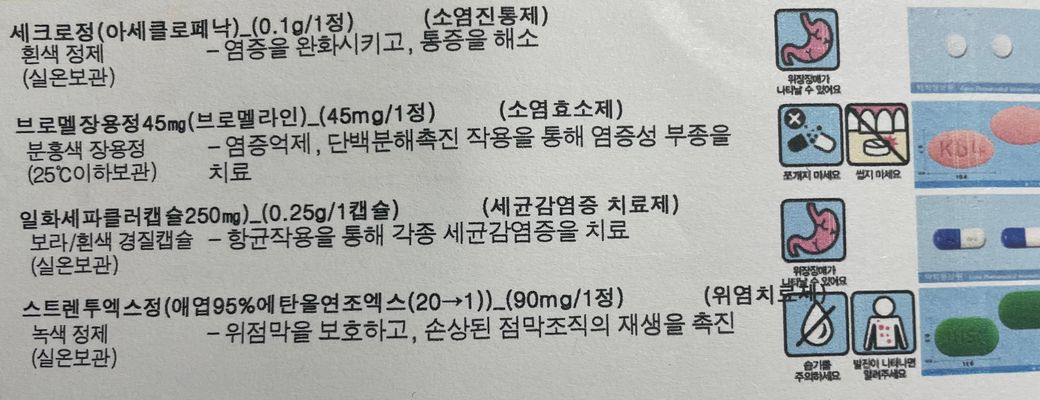 손을 다쳐서 다음과 같은 약들을 처방받았습니다.