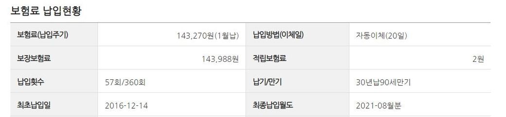 30년납부/90년만기 이고 비용은 14만원정도 나옵니다. (매년 비용오름)