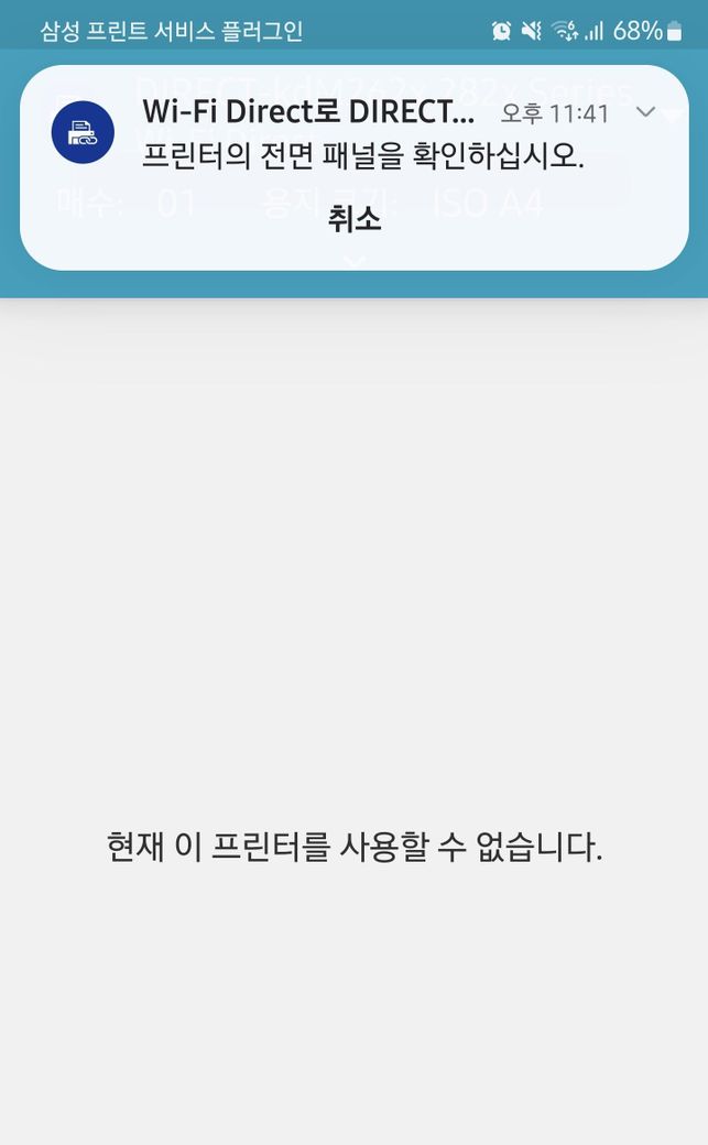 핸드폰과 프린트 모두 재부팅을 진행하신 후에 다시 사용해보시길 추천드립니다.