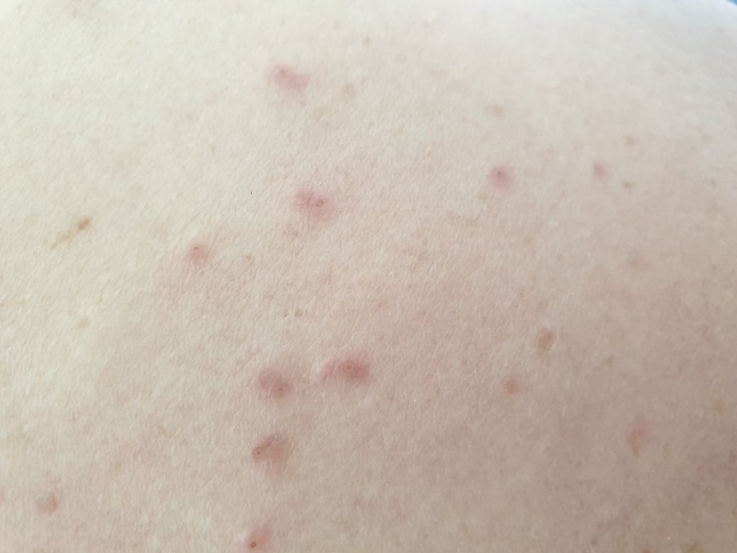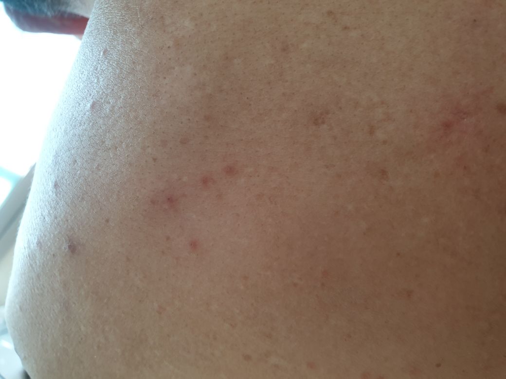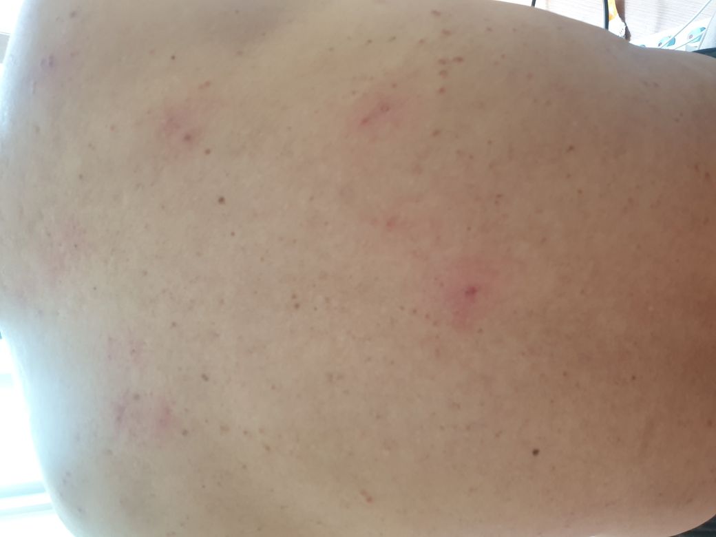 피부에 곤충에 의한 상처들로 보이는데 한곳에 집중적으로 발생하는 특징을 보이게