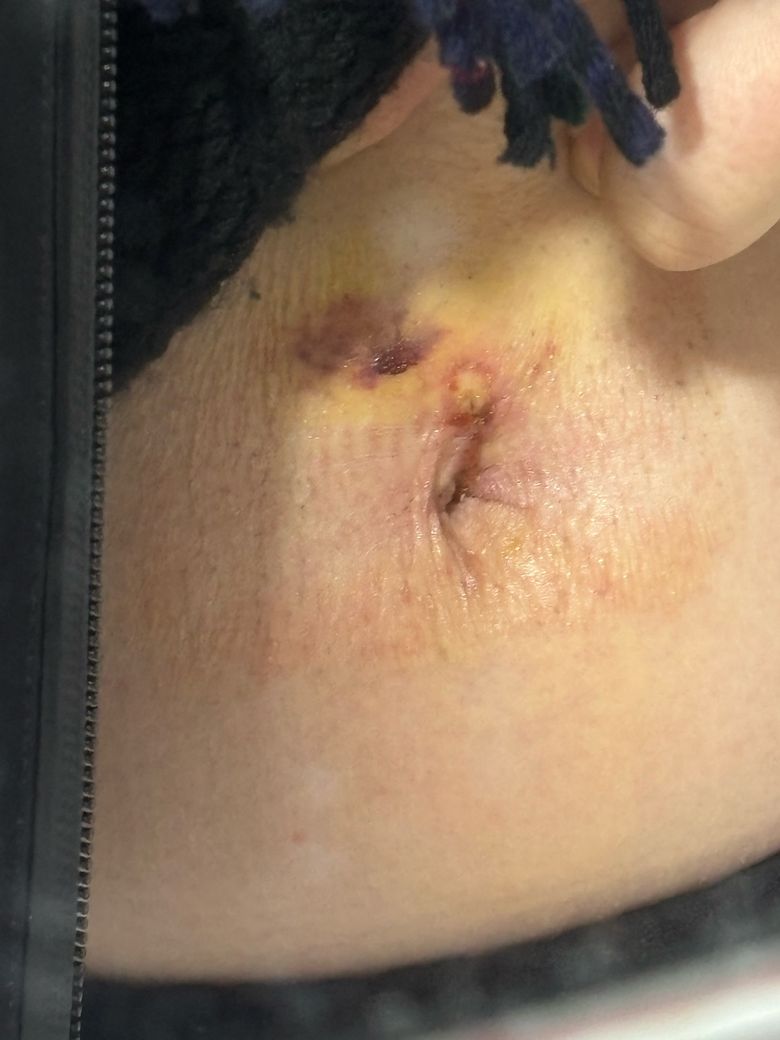 사진상 수술 부위 주변에 국소적인 발적과 통증이 있고, 상처 가장자리에 보이는 하얀 부분은 소량의 삼출물이나 봉합사 주변의 염증 반응일 가능성이 있습니다. 다만 통증이 심해지고, 눌렀을 때 고름이 나오거나 열감·붓기·발열이 동반된다면 감염 가능성을 배제하기 어렵습니다. 수술 4일째에 통증이 점점 심해지는 양상이라면 외래 또는 수술받은 병원에 방문해 직접 확인받는 것이 안전합니다.