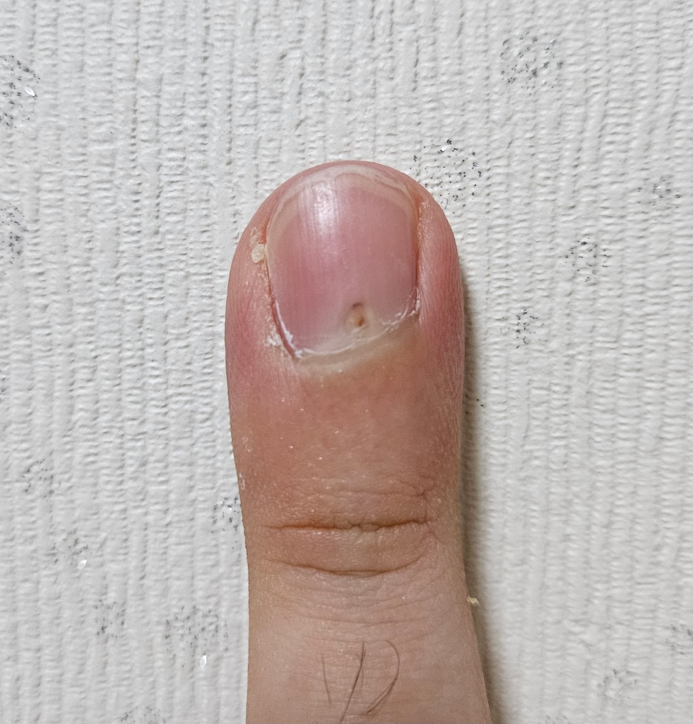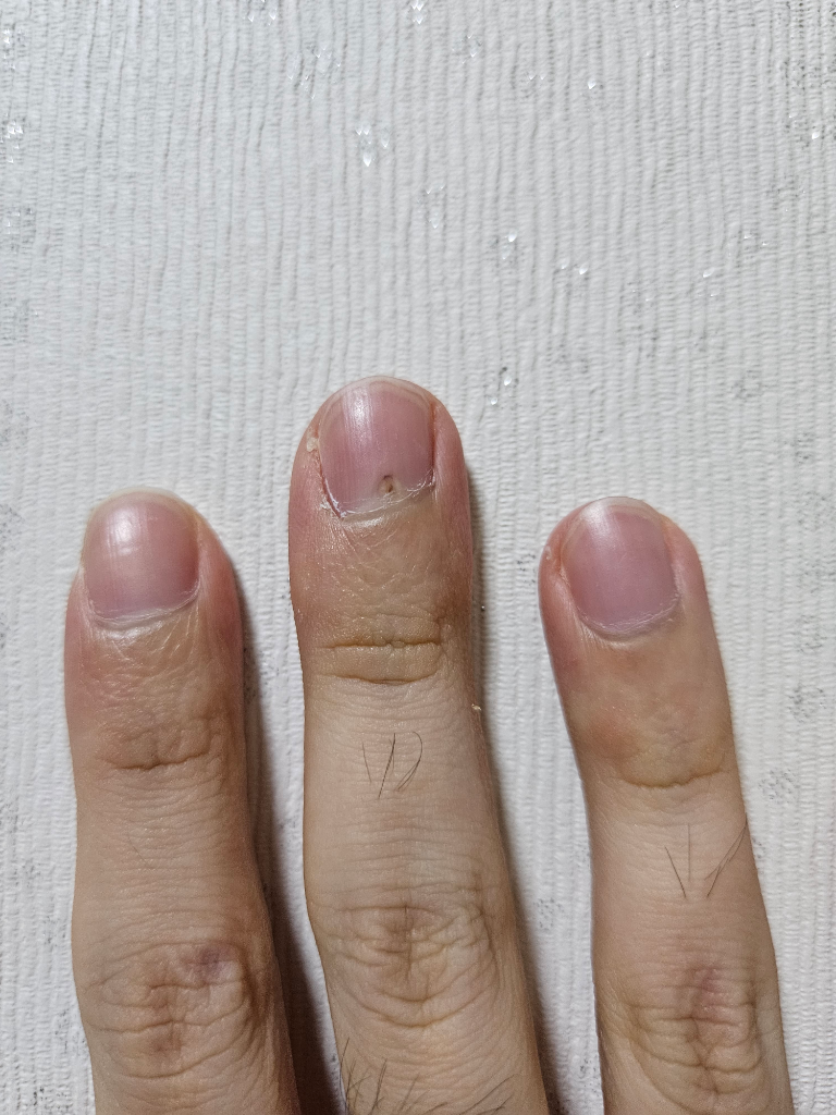 손톱 뿌리에 손톱을 만들어내는 nail matrix라고 하는 부위가 있습니다. 여기에 충격이 가해지면 일시적으로 손톱의 형태가 변해서 만들어질 수 있습니다.