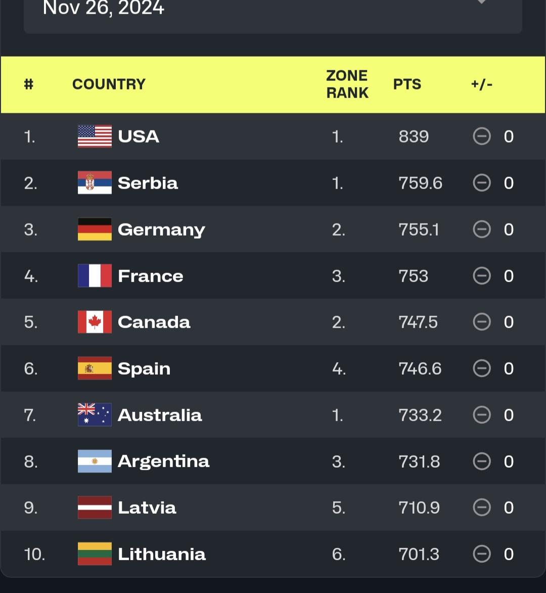 <2024. 11. 26일 발표 남자 FIBA 랭킹>