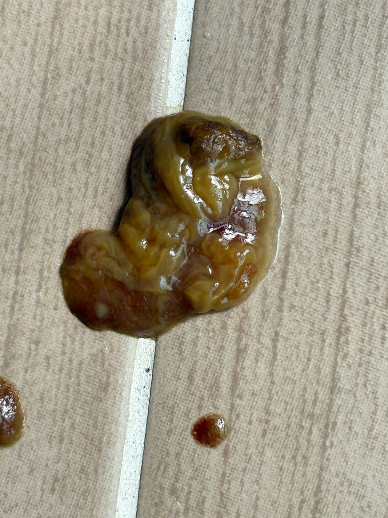 전형적인 점액변으로 대장성 설사 혹은 대장염, 대장에 자극을 주는 무엇인가가 있다는것을 의미하니 동물병원에 데려가서 분변검사에서부터 초음파 검사등 필요한 검사를 받으시기 바랍니다.