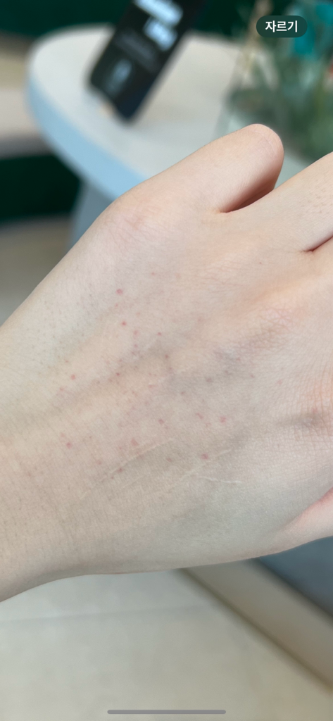 이번엔 손등은 매끈한데 붉은 반점만 여러개 났어요