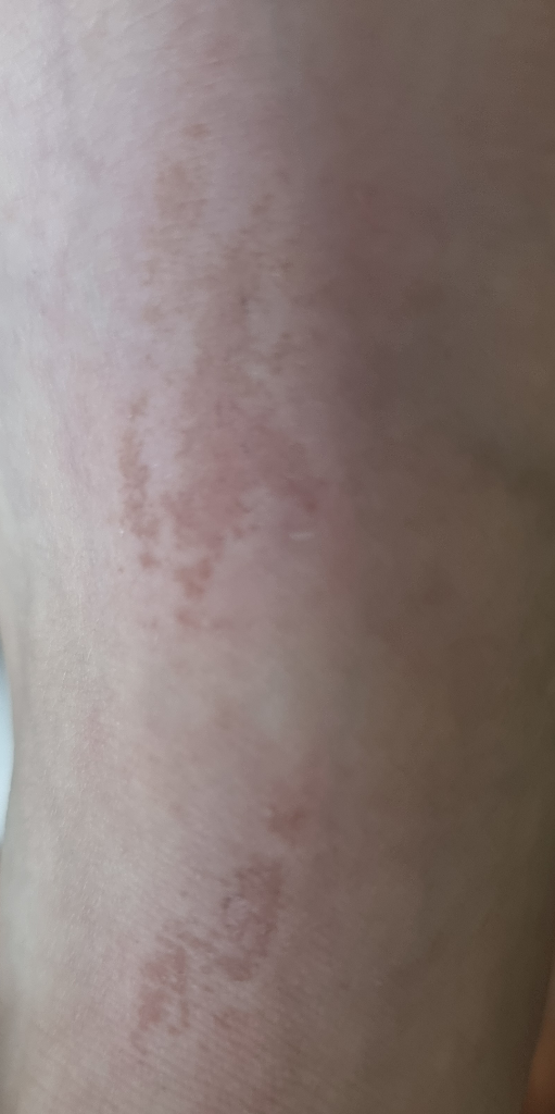 현재 사진상만으로 정확한 감별은 어렵습니다. 일반적으로 바이러스 감염 후에 피부 발진이 발생할 수 있으나 다양한 발진 원인이 있으므로 정확한 진단을 위해 피부과에 내원하시어 진료를 받아보시는 것이 좋겠습니다.