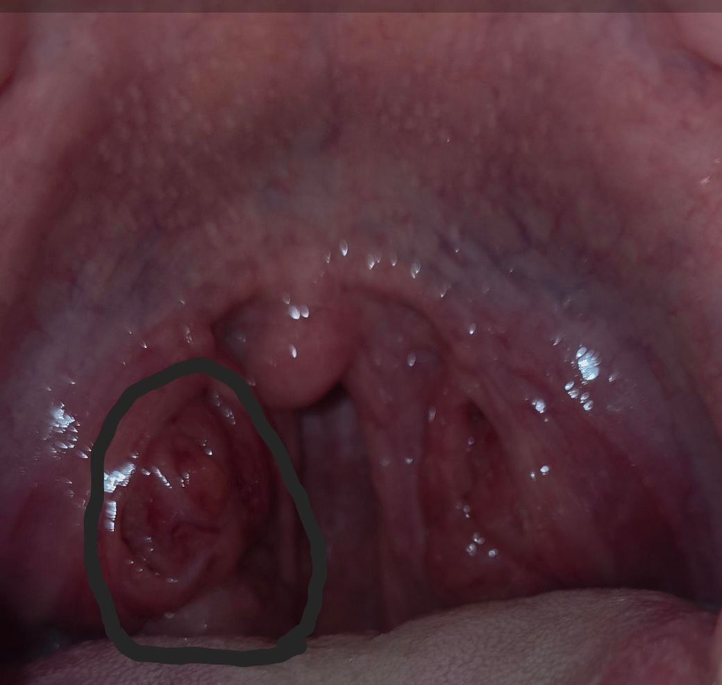 사진상 좌측 편도가 우측보다 비대되어 있고, 표면은 비교적 매끈하며 뚜렷한 백태나 농성 삼출은 뚜렷하지 않아 보입니다. 20대에서 한쪽 편도만 커 보이는 경우는 생각보다 흔하며, 가장 흔한 원인은 일측성 급성 편도염 또는 바이러스성 인두염 초기 단계입니다. 이 경우 통증, 연하통, 미열, 권태감이 동반될 수 있고 수일 내 호전되는 경우가 많습니다.