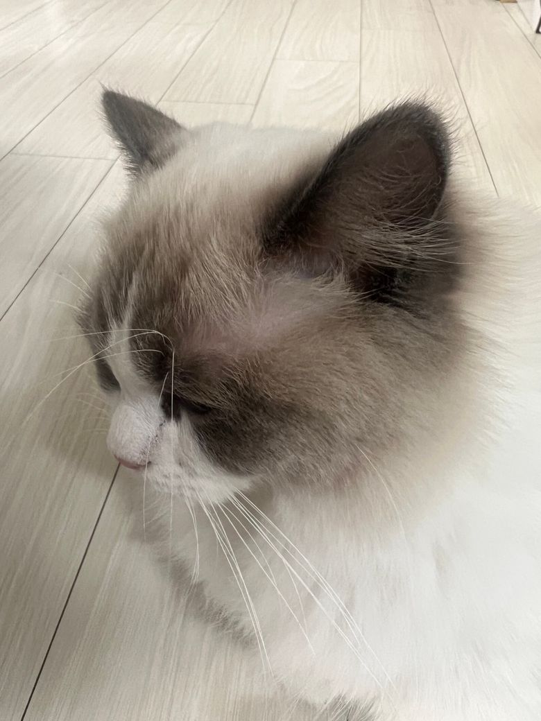 전에 눈 위에 털이 조금 없고 비어있는 것 같아서 동물병원에 물어봤더니, 이정도는 원래 그런거라고 괜찮다고 하더라구요