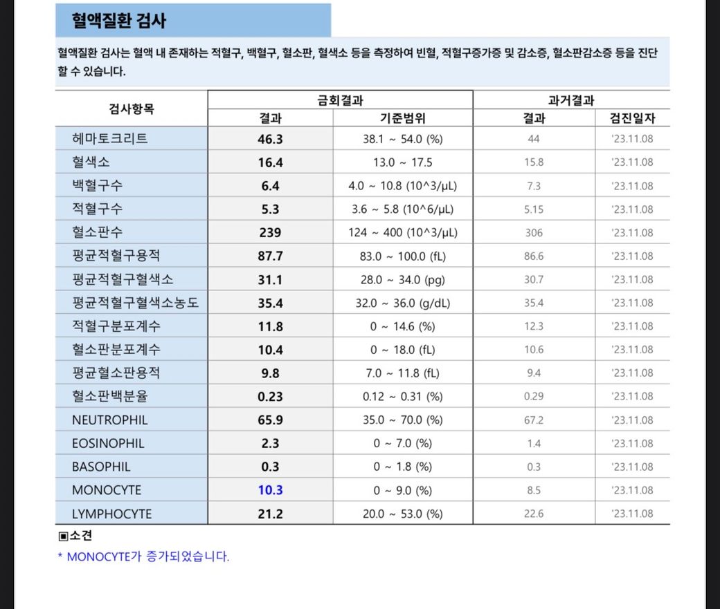 건강검진 피검사를 햇는데 monocyte가 높게 나왓어여 ..무슨 문제때문에 그런걸까여 무섭네여. 그리고 ldl콜레스트롤도 2년전에 높은뒤 작년 9월에 검사했을때 정상으로 내려갔는데 다시높아졌네요 ㅠㅠ 어케해야할까요 ㅠㅠ