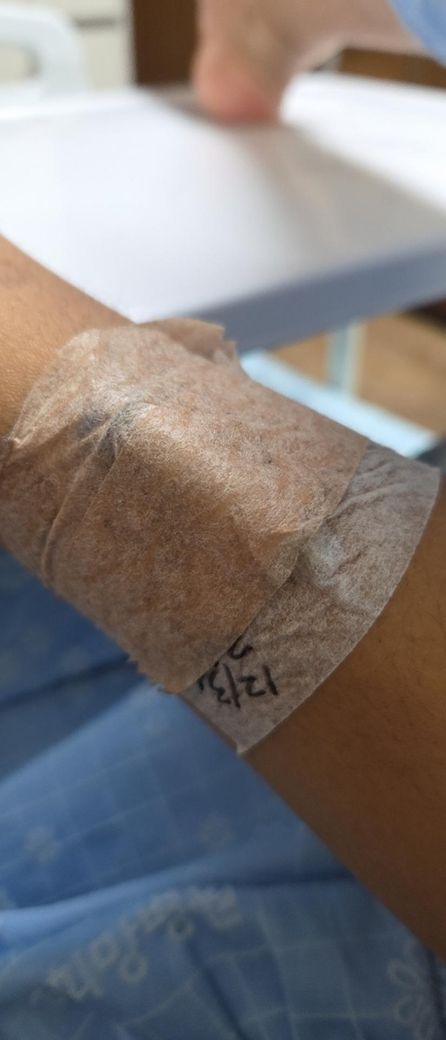 수액 다 맞고 다음날에도맞으려고 플라스틱바늘만 남겨저있는거에 뭔 뚜껑껴서 테이프붙이고 있는데 실수로 툭쳐서 계속 멍든거같은느낌? 이 약간드는데 어카나요