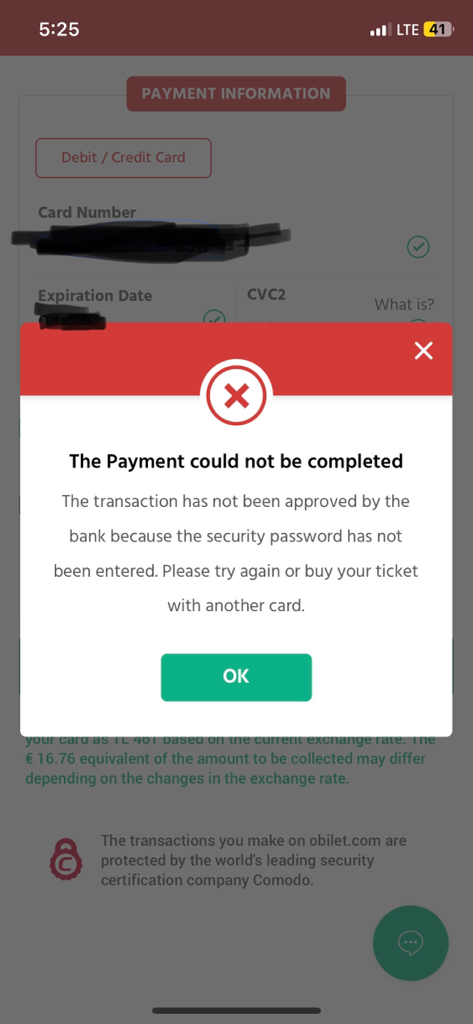 다른카드로 해보시던지 security 비번이 잘못입력되었다고하니 카드번호와 뒤에 3글자까지 정확하게 기입해보세요 그래도 안되면 다른카드로 하시는게 날것같습니다