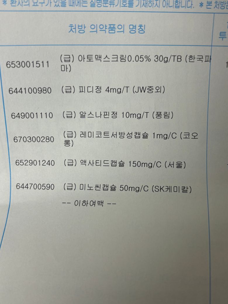 피부과에서 약을 1달 처방 받았고 현재 3일 먹었습니다(하루에 1정 2번씩) 그런데 일상생활이 도저히 안 될 수준으로 너무 졸려서 앉아있기도 힘듭니다.. 피디정이나 항히스타민제가 문제인 것 같아요. 이 약들을 3일만 먹고 바로 복용중단해도 괜찮을까요?