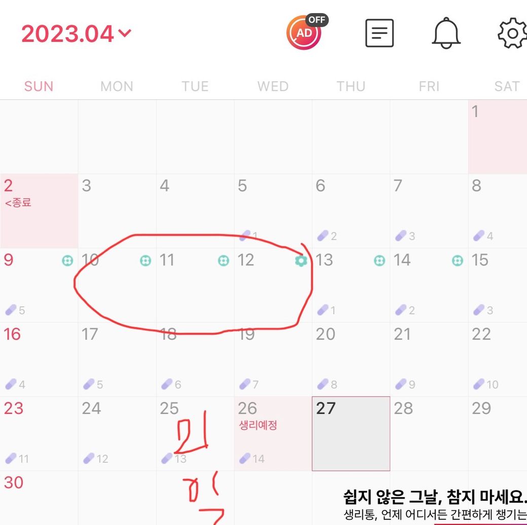 5월3일이 21일 마지막정먹고 5월 4일 부터 생리기간인데