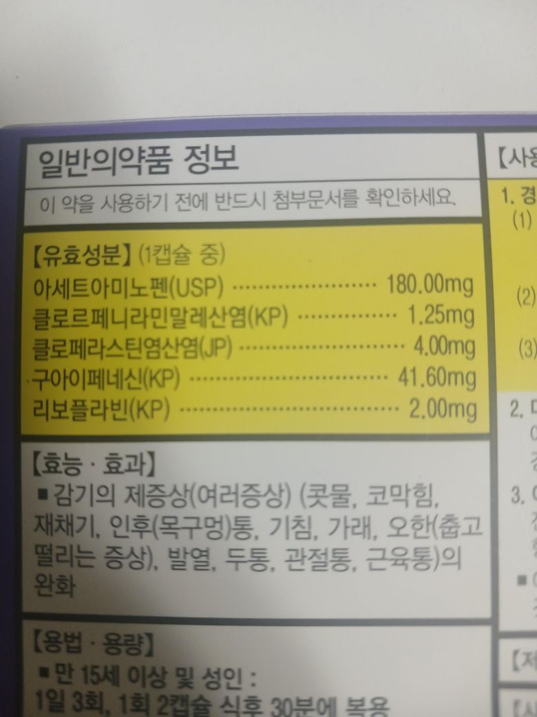 아래 감기로 복용하시는 약에도 해당 성분이 일부 중복되는 것이 있어서 함께 복용시 졸음이나 입마름 부작용이
