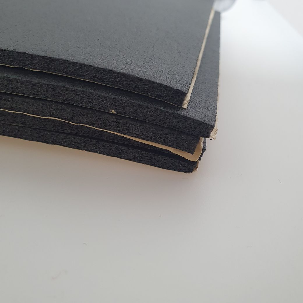 가. 차음재 : 공간 내부의 소리를 외부로 통하지 않도록 차단하는 자재로, 100% 폴리우레탄 또는 ??% 고무(NBR rubber)로 되어 있는 자재입니다.