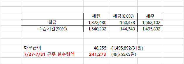 7월달 5일치에 대해서 급여를 받았고, 그 금액이 241,273원 입니다.