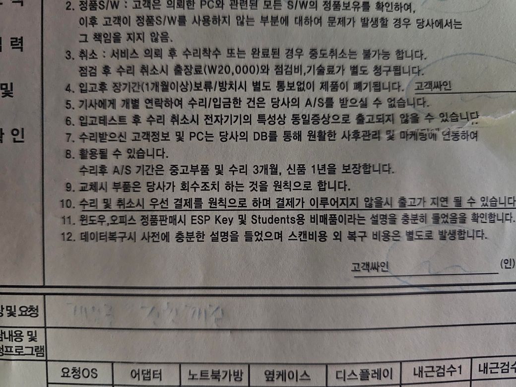 컴퓨터 AS 맡겼는데 부품을 자기들 맘대로 폐기했다네요.