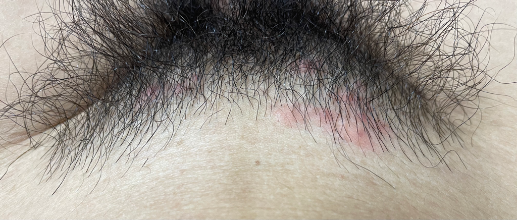 6월 3일 밤에 성기 윗부분을 누르면 근육통처럼 약간의 통증이 있음을 확인하였습니다.