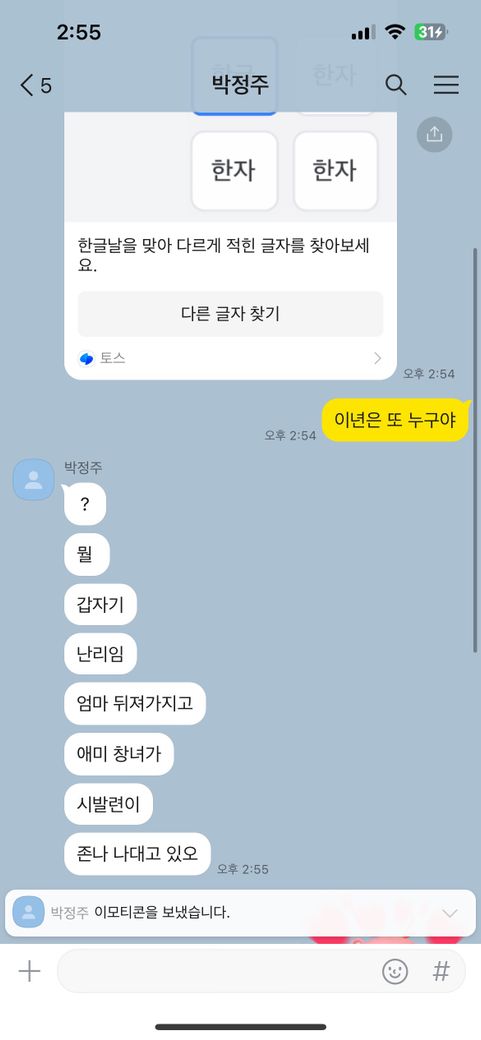갑자기 모르는사람이 카톡을 보냈길래 보니