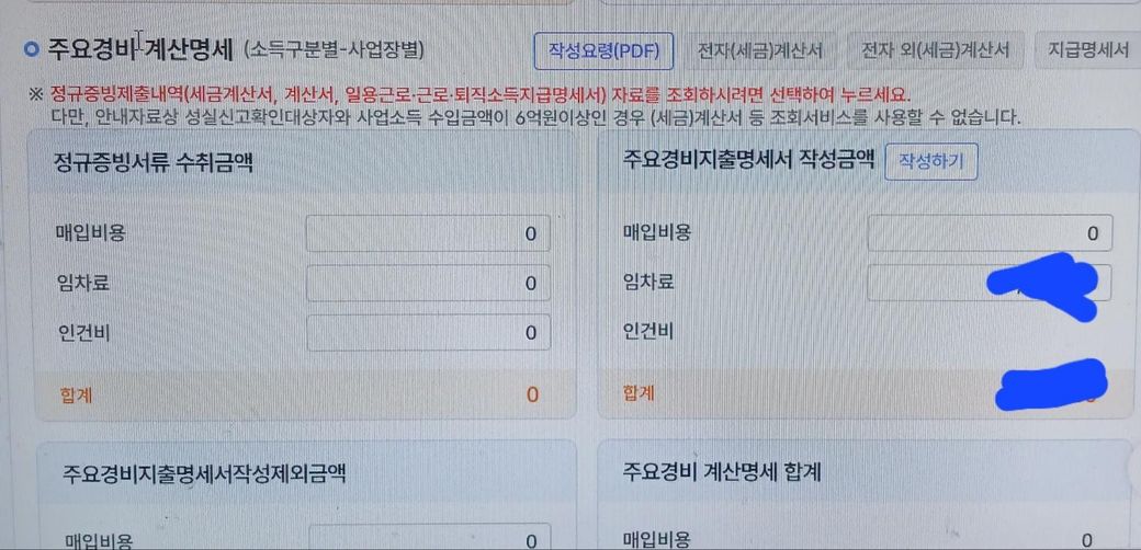 주요경비 계산명세서 입력할때 불러오기가 않되는 이유는 무엇인지 궁금합니다