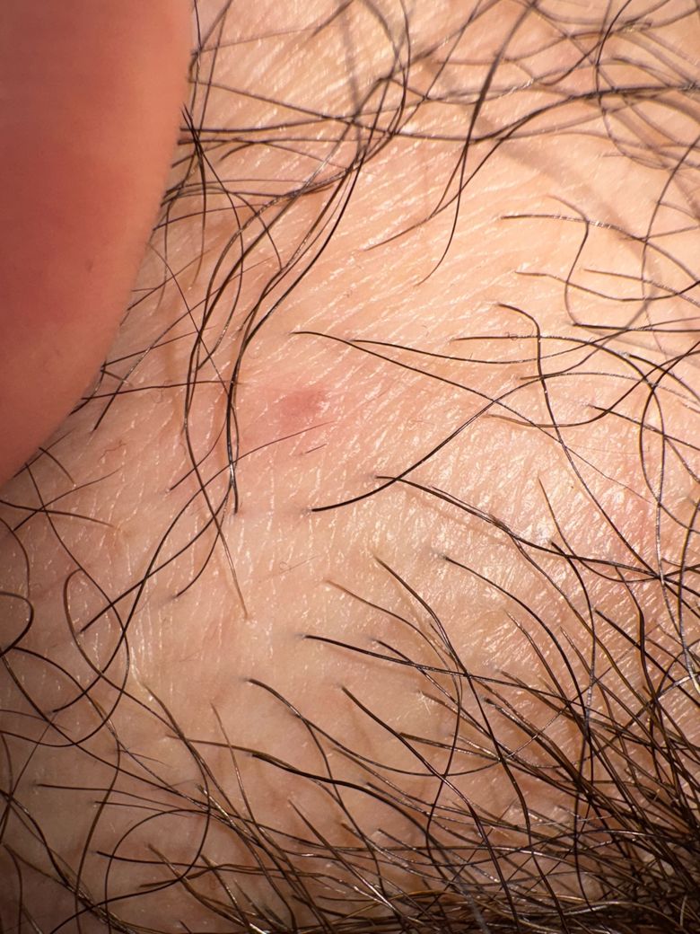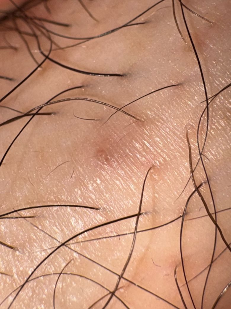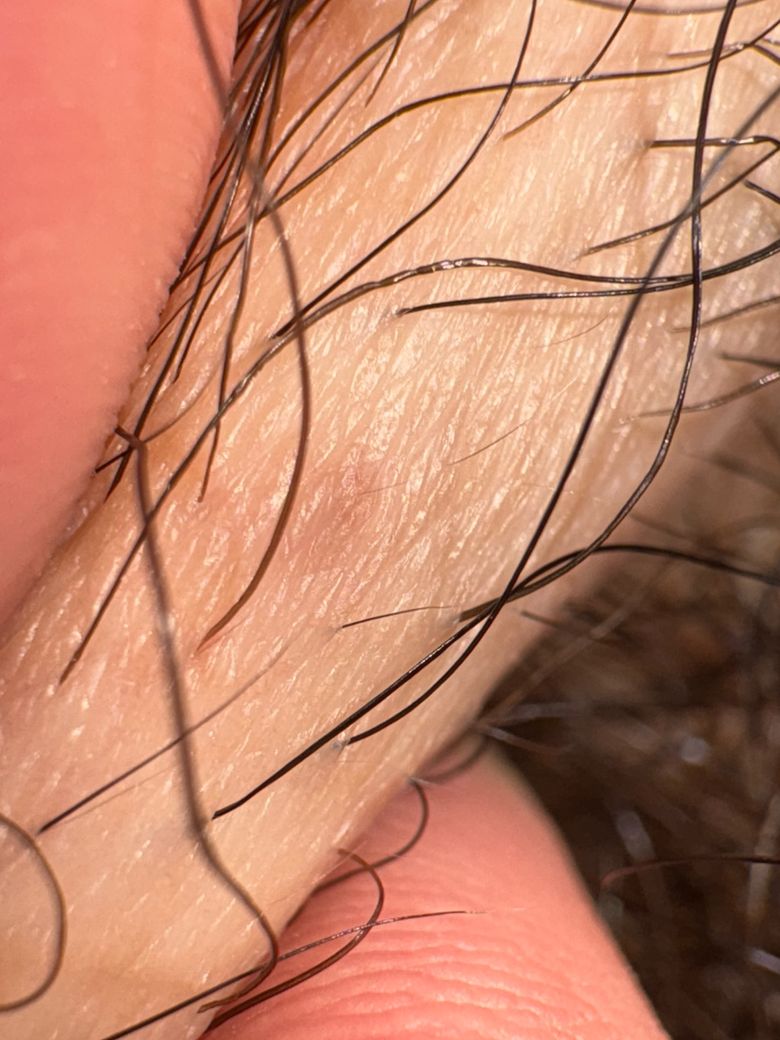 사타구니 위쪽에 음모가 나는 존 시작위치에 붉은기가 생겼었습니다. 첨부한 사진에 있는 모낭에 있던 털 한가닥이 빠진 후 3-4일째 저상태 그대로 있습니다 희미한 털 한가닥이 새로 나고있는거 같구요.