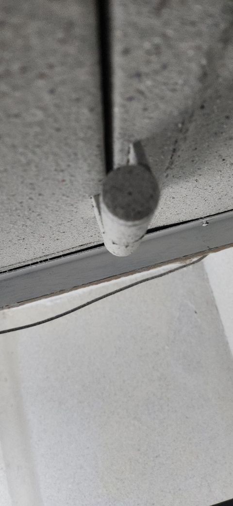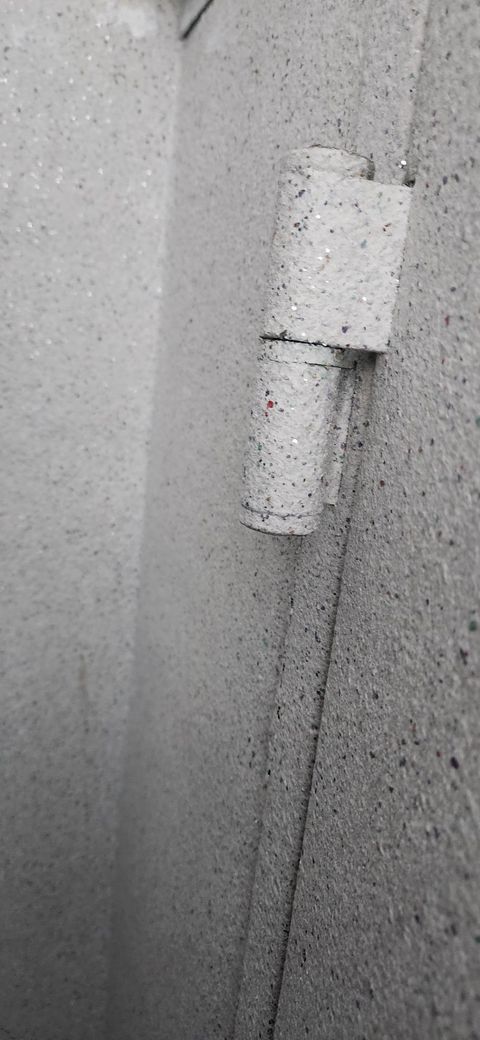 힌지 전체가 페인트로 덮여 있는 드럼힌지(원통형 경첩)타입입니다. 이 타입은 일반 경첩처럼 나사가 바로 보이지 않아서 처음 보면 일체형처럼 안 빠질 것 같지만 구조만 알면 탈거 가능합니다. 따라서 커터칼로 힌지 원통의 위, 아래 라인(이음새)에 칼집을 넣고 문을 살짝 열고 손잡이를 잡고 문을 위로 힘있게 들어올리세요. 움직이지 않으면 고무망치로 힌지 아래를 위 방향으로 톡톡쳐서 충격을 주고 다시 들어 올리면 빠질겁니다