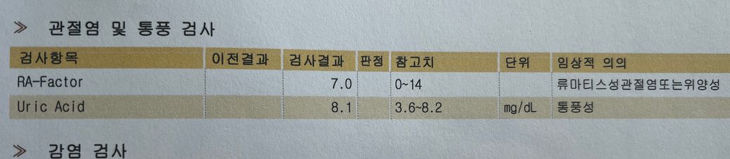 현재 요산 수치는 걱정할 정도는 아니므로 요산 생성을 증가시킬 수 있는 퓨린 함량이 많은 식이는 주의하시기 바랍니다.
