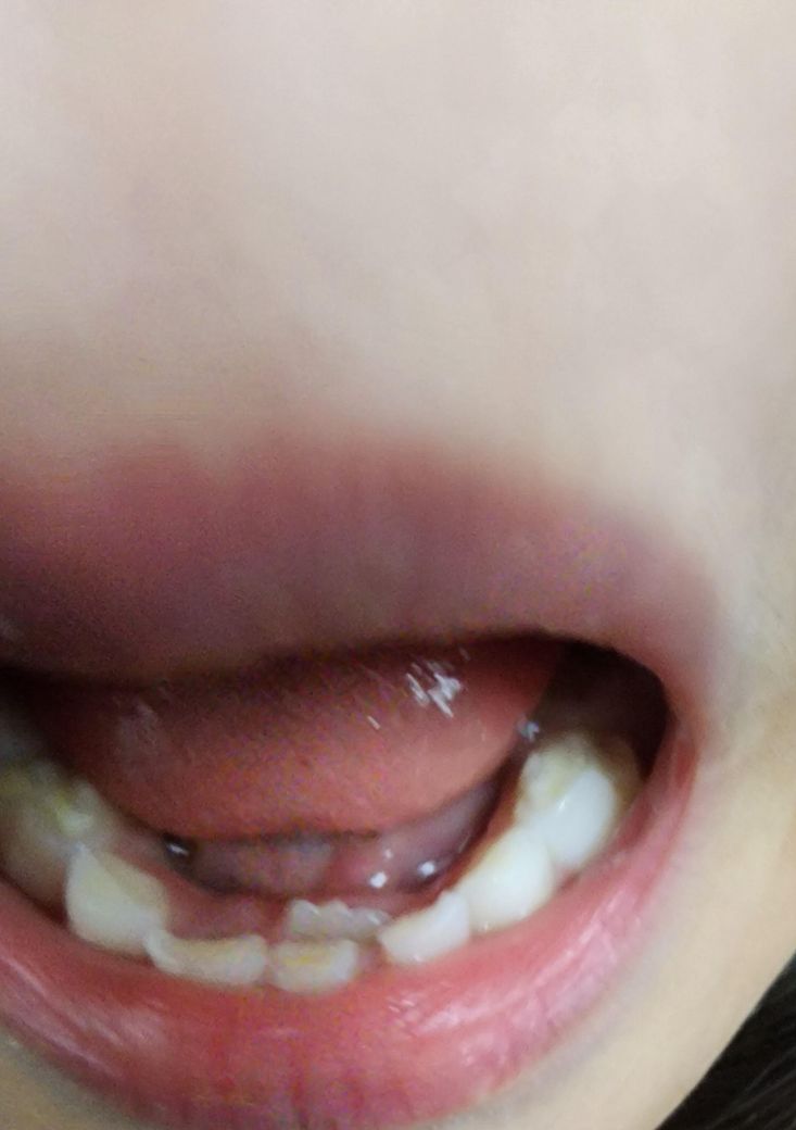아래 앞니의 경우 설측으로 기울어져서 맹출하는 경우도 있습니다.