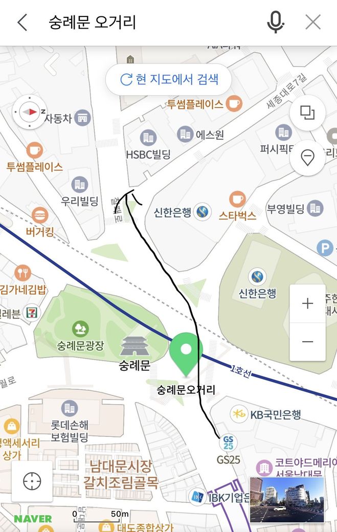 1. 남대문 시장 건너편(흥국생명빌딩 앞) 3차선에서 염천교방향의 우측 두번째 차선으로 진행중이였습니다.