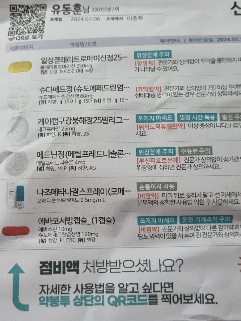 피임약이랑 같이 복용 가능한지, 코감기에 걸린 게 맞는지 병원에서 들었는데 기억이 안나서.. 이런? 증상이 오면 코감기인 게 맞는지 궁금해서요.