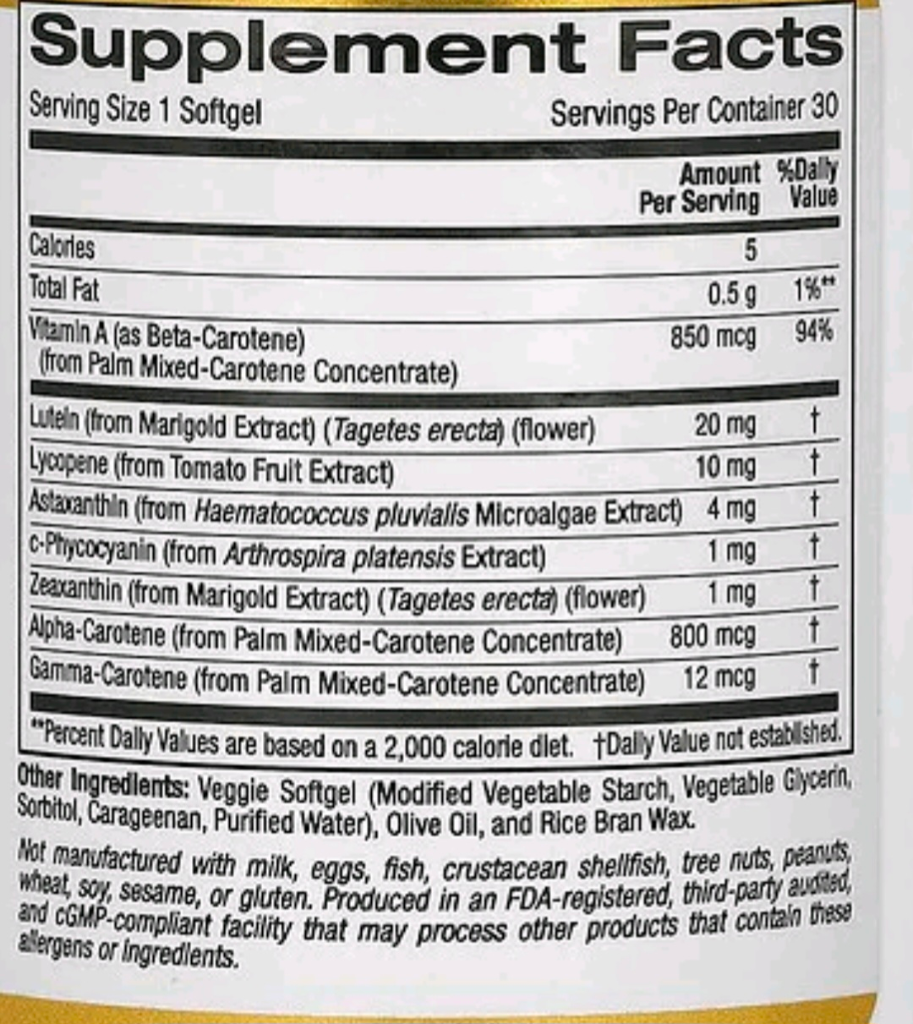 베타카로틴은 필요한 양만 비타민A로 전환되기때문에 이 영양제들을 복용하더라도 비타민A 과량에 의한 독성은 나타나지 않습니다.